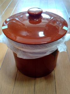 毎年 手作り味噌を仕込んでいます。小・中学時代の友だちに来てもらって、3~4人で作っています。いつから一緒に作ってるかなー、と振り返ってみると、2018年からでした。今年で9回目になりました。来年は十周年やねー、何かお祝いする?などと話しながら、他にもいろいろとお喋りしながら、順調に進んで行きました。